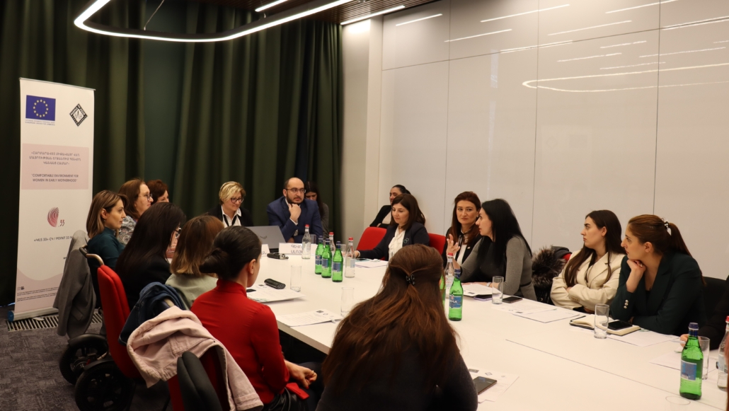 Հանդիպման ժամանակ «Հարմարավետ միջավայր վաղ մայրության շրջանում գտնվող կանանց համար» ծրագրի իրավաբան Գևորգ Սլոյանը ներկայացրեց ծրագրի շրջանակում կատարված «Կրծքով կերակրումը և ընտանիքամետ մոտեցումները աշխատավայրում» հետազոտության հիմնական դրույթները, որը ներառում է հայաստանյան և միջազգային օրենսդրական կարագավորումները, խնդիրները և դրանց ուղղված բարեփոխումների առաջարկությունները։